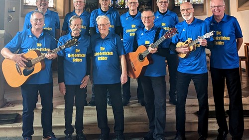 Im Rahmen der Kreuzkirchen-Konzerte lädt die Evangelische Versöhnungs-Kirchengemeinde am heutigen Mittwoch um 19 Uhr zu einem Konzert mit den „li(e)derlichen Brüder“ in die Wiedenbrücker Kreuzkirche ein. Sie spielen und singen Chansons und Schlager, Liebeslieder und Li(e)derliches, Altes und Neues. Bei den Mitsingkonzerten weiß man nie, was als nächstes kommt. Einer Sache kann sich das Publikum sicher sein: Alle Lieder werden mit Herzblut und Freude gespielt und gesungen und bei den li(e)derlichen Brüdern auch mit einem gewissen Augenzwinkern. Der Eintritt zum Konzert ist frei.