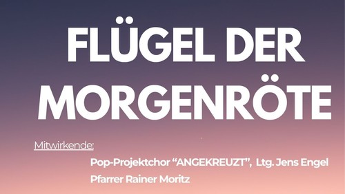 Die Oster-Pop-Kantate "Flügel der Morgenröte" von Heiko Bräuning und David Plüss lässt uns mit ergreifender Musik und tiefgehenden texten in das Passions- und Ostergeschehen eintauchen. Der Pop-Chor "Angekreuzt" und der Leitung von Kantor Jens Engel wird die ergreifende Musik in unserer Gemeinde zum Klingen bringen.