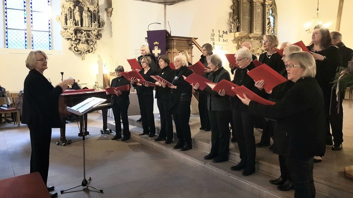 Zu Gast ist der Rotkreuzchor des DRK Rheda-Wiedenbrück unter der Leitung von Gabriele Berger.