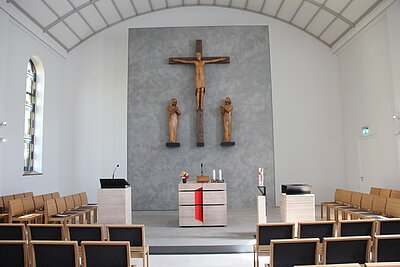 Die „Liebe zu ihrer Kirche“ sei den evangelischen Christen in Wiedenbrück bei dieser Feier förmlich abzuspüren gewesen, so schrieb damals Pfarrer Cremer (Warburg) im Gustav-Adolf-Blatt. Eine Kirche „von erhabener Schlichtheit“, so beschrieb sie damals die heimische Presse. Ein Blickfang ist sicherlich die von Bernd Hartmann geschaffene Kreuzigungsgruppe, die ein bedeutendes Zeugnis der Wiedenbrücker Schule darstellt. Im Jahr 1991 konnte nach einer langjährigen Sammlungsaktion die alte abgängige Orgel gegen ein neues Instrument (16 Register / 990 Pfeifen) der Firma Steinmann ausgewechselt werden.