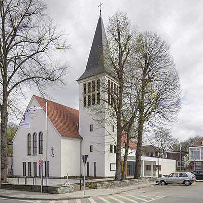 In einem Festzug zog die Gemeinde durch die Wiedenbrücker Straßen, um an der Kirchpforte der feierlichen Schlüsselübergabe beizuwohnen. Fast auf den Tag genau ein Jahr nach dem letzten Gottesdienst in der alten Kirche konnte nun in einem völlig neuen Gotteshaus gefeiert werden.